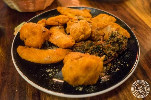 Pakora at Baluchi's, Indian restaurant in Tribeca, NYC, New York