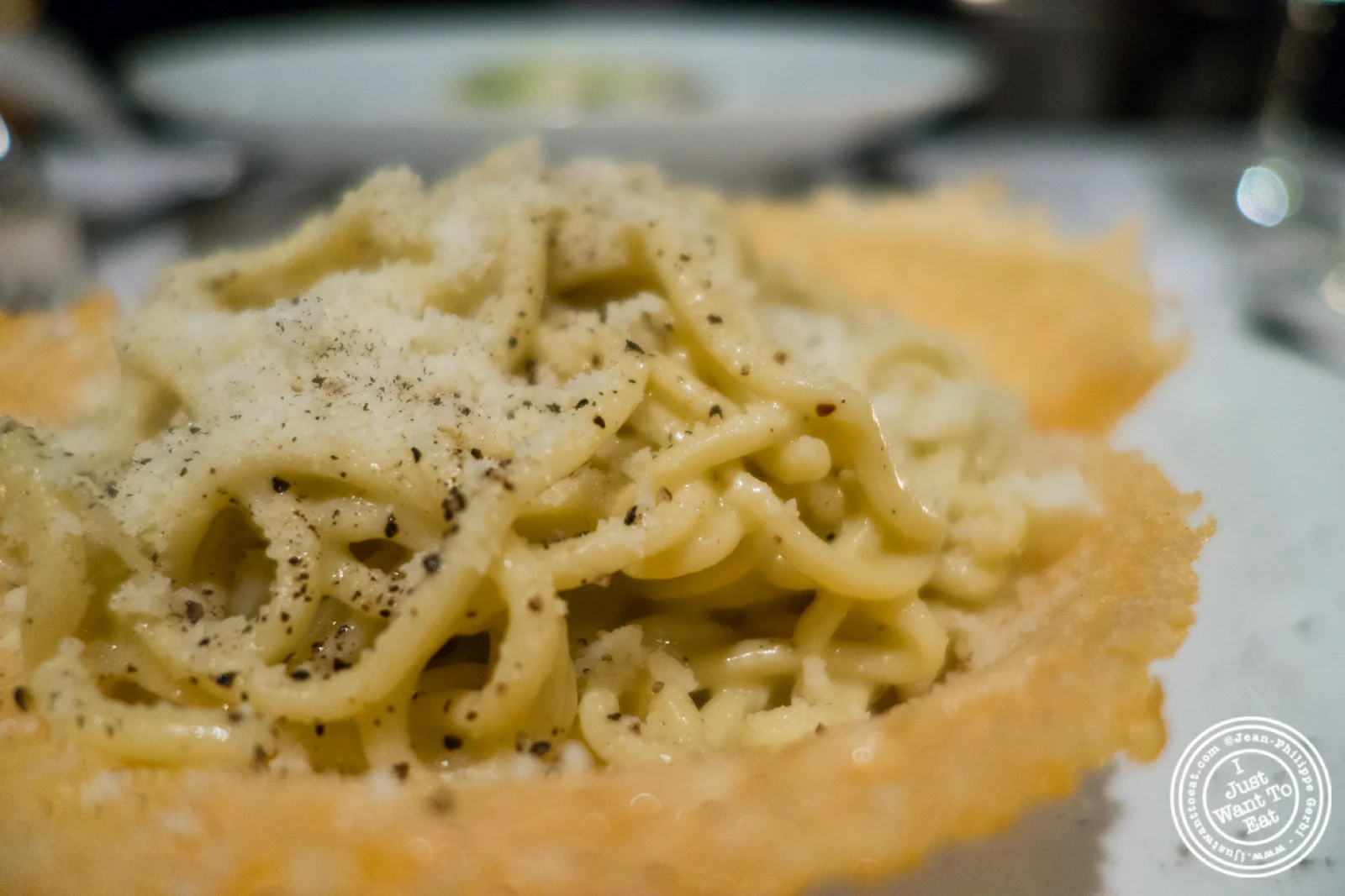 On my side, I was inclined to order the Linguine alle vongole, but the printed menu mentioned that the pasta was not homemade. So, I ordered the Pici cacio e pepe or thick fresh spaghetti with black pepper, pecorino cheese and olive oil, served in a cheese basket.