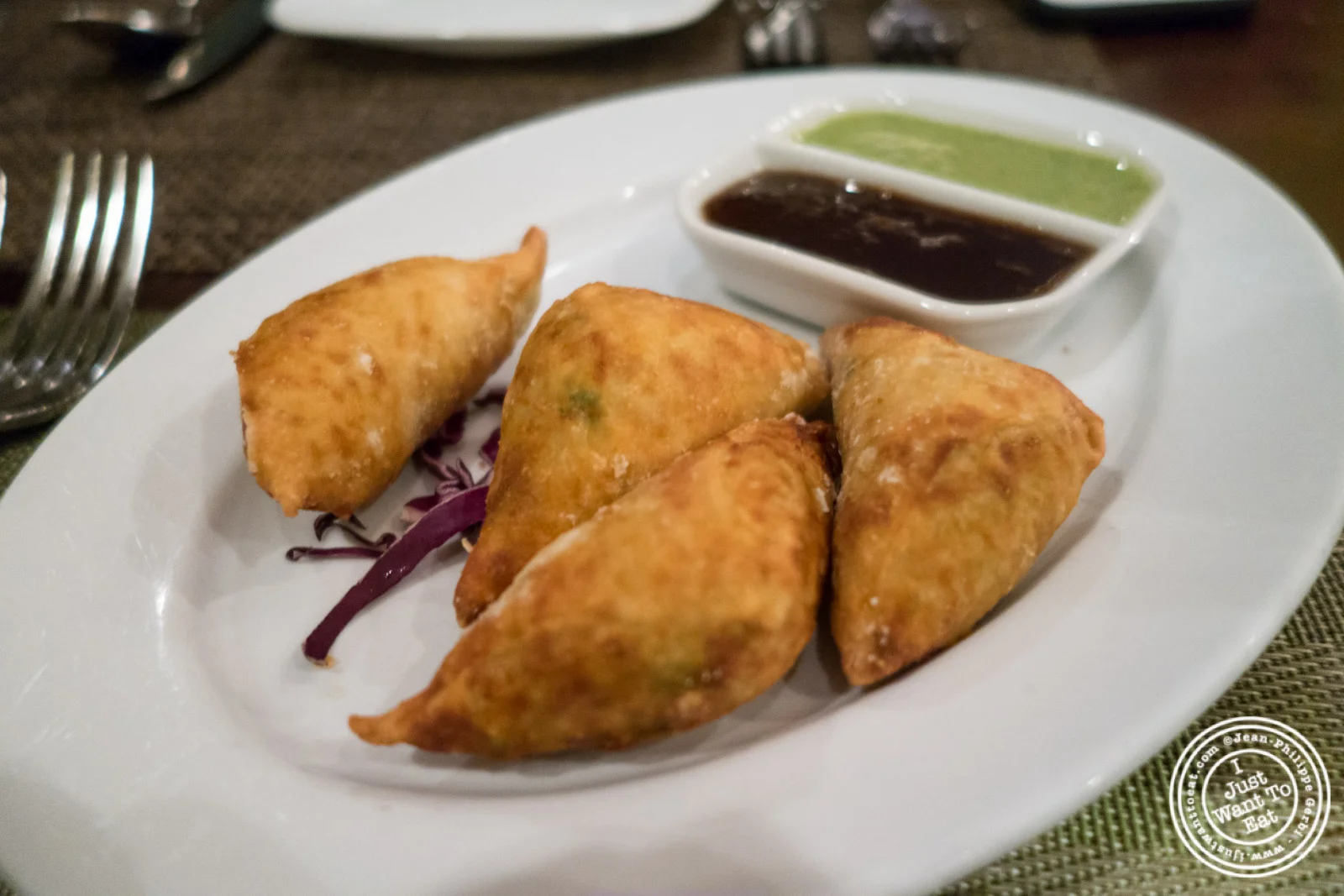 Vegetable samosas at Mint, Indian restaurant in Midtown East, NYC, New York