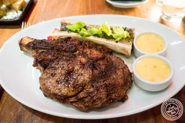 Their menu is also unusual, definitely elegant and unique. You find of course the classic pieces of meat, such as ribeye, filet mignon or porter house, but for instance with interesting toppings like foie gras butter or bone marrow.