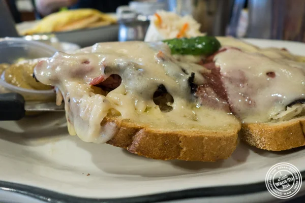 On my side, I went for the pastrami Reuben sandwich, that was in fact an open sandwich. I might have been disappointed about that, thinking that I would enjoy a messy sandwich, the grease from the pastrami dripping on my hands. But in fact, it was a decent sandwich, the only part missing being the Russian dressing replaced by mustard.
