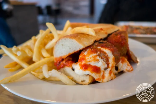 Off The Hook is a raw bar and seafood place in the heart of Astoria, a bit off the beaten path. When we went for brunch there, we met with one of the owners, Bes, who explained to us that they opened this place two and half years ago with the idea of doing something different from the other seafood places in the area that were mainly Greek, proposing many different dishes focused on fresh seafood, whether served raw, fried, baked, etc. Opened 7 days a week, they get their seafood from the Bronx fish market, as well as from other local merchants.