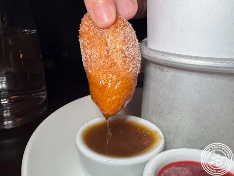 With our meal, we got a glass of Rosé ($19) and Jodi a Shirley Temple ($8). I should mention the dessert that was probably the only thing I liked there: we got their cinnamon sugar doughnuts ($16) that were served with a raspberry jam and maple syrup. These doughnuts were deliciously addictive and I did not even need the dipping sauces as they stood on their own.