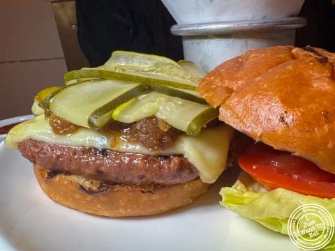 With few dishes that are a nod to French cuisine, I would more think that Cafe Cluny serves international food, from burgers to lobster rolls, pasta or these chicken dumplings buffalo style ($19) that are a cross between American and Chinese cuisine. Good idea, but I thought it did not deliver on its promise: the shell was thick as was the filling, giving to the dish a doughy-like texture. Or the burger ($28) where you can add chèvre (goat), gruyère or Roquefort for a French touch: I did add gruyère and Roquefort, each for an additional $2, but the patty was unfortunately a bit overcooked and dry, to the point that I did not finish my dish, that is really rare with me. However, their vegetarian burger ($27) was pretty good, being tasty and not mushy as you sometimes get.