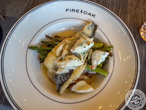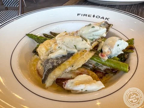 Bronzino and crab scampi at Fire And Oak in Jersey City, NJ