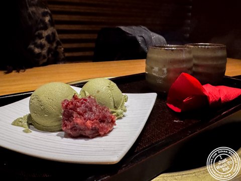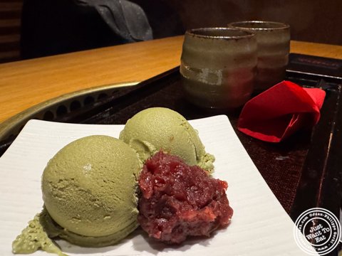 Green tea ice cream with red bean at Yakiniku Toraji in New York City