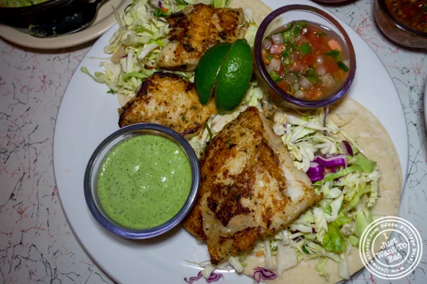 On my side, I went for the fish tacos (2), a white fish served with cabbage (too much of it), pico de Gallo and their Mexican cream sauce. Very good, it was a bit messy to eat by hand, but was not the best fish tacos I ever had (I miss The Taco Truck in Hoboken that had the best fish taco ever). I was expecting the fish to be a bit more breaded than that, adding some crunch to the whole thing. Nevertheless, it was good.