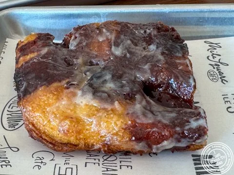 Opened beginning of July where Park Avenue Cafe used to be, the Mile Square Cafe caught a lot of attention as it is the new venture of the Chefs behind O’Bagel, a Hoboken favorite who won the United States of Bagel competition. So I was curious to try Mile Square Cafe. It is a nice large space, bright and spacious, with a counter to place orders in the back and a bit of the view of the busy kitchen that does not seem to slow down. Coffee and tea are fairly standard, but what makes all the difference is their food that definitely stands out. They make focaccia in various ways: sweet with their surprising Cin-caccia ($8.95), a successful take on cinnamon roll, and savory with their za’atar focaccia sandwich ($10.95) that is refreshing on a summer day with its labneh, cucumber and mint. Health conscious dinners can also go with their grain bowl ($16.95) made with quinoa, mixed greens, herbed red cabbage slaw, tomato-cucumber salad and pistachios (we asked without), where you can add some avocado falafel that were deliciously crispy on the outside and moist inside, thanks to the avocado that added a nice fattiness to it. For something heavier, the birria grilled cheese is superb: made with braised beef and Oaxaca mozzarella blend, it comes with a spiced consommé that is so good you cannot stop dipping in it. I just wished the bread was thinner. Still, a must have.
